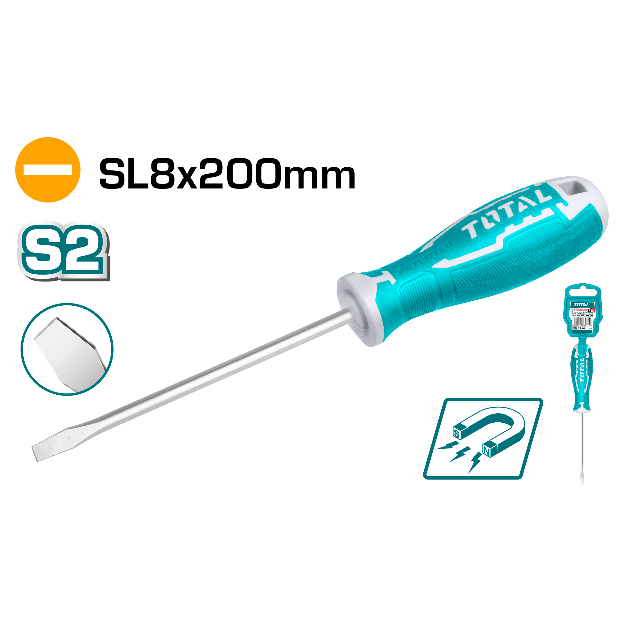 Regular price 0.00 AEDSale price 0.00 AED Regular priceUnit price perSale Sold outTOTAL Slotted screwdriver (THT268200) S2 Steel Round shank Slotted: 8mm Diameter: 8mm Length: 200mm DISCONTINUED