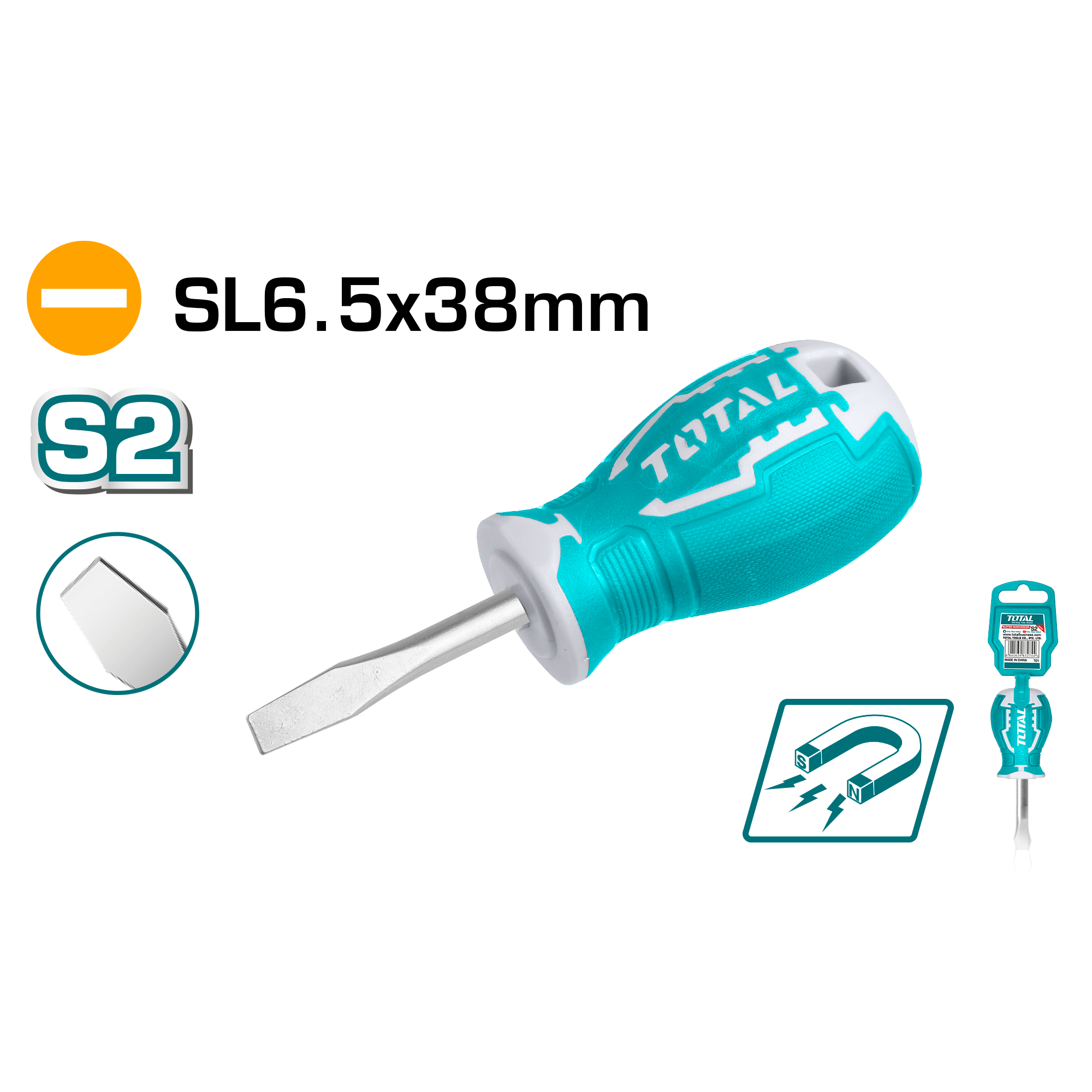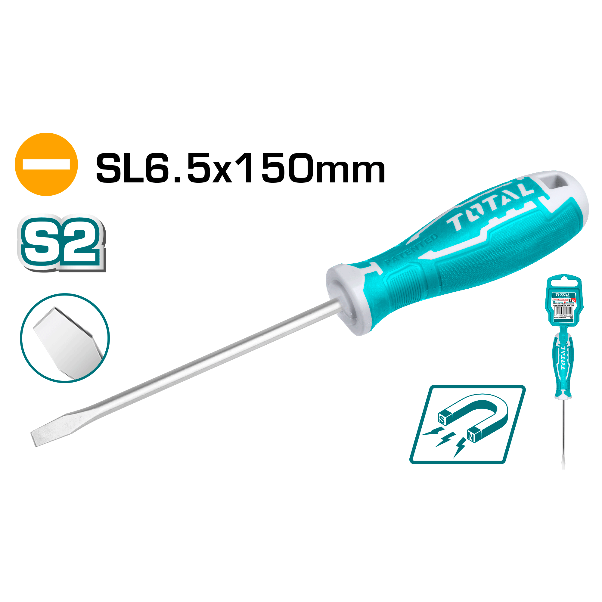 Regular price 0.00 AEDSale price 0.00 AED Regular priceUnit price perSale Sold outTOTAL Slotted screwdriver (THT266125) S2 Steel Round shank Slotted: 6.5mm Diameter: 6mm Length: 125mm DISCONTINUED