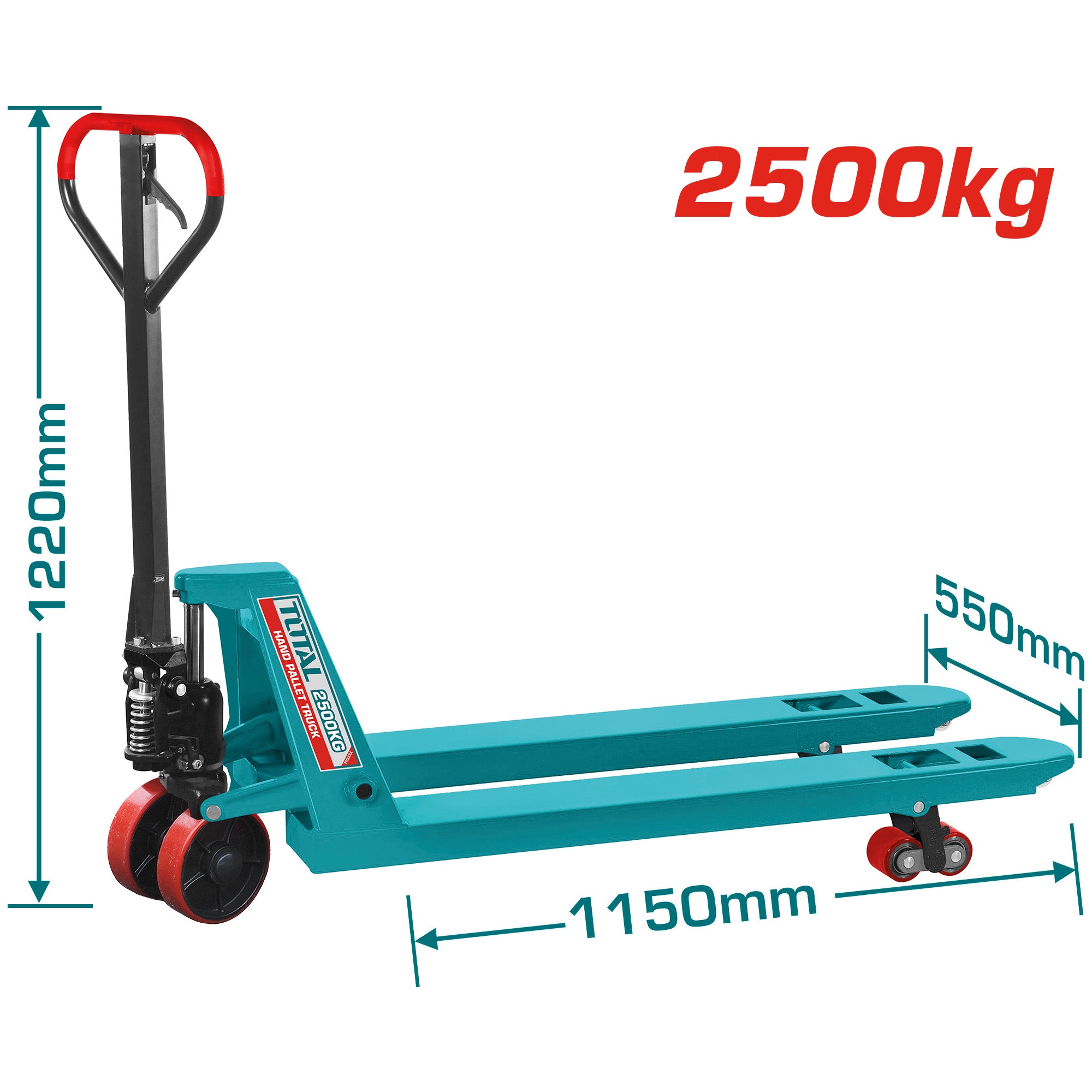 Regular price 849.00 AEDSale price 849.00 AED Regular priceUnit price perSale Sold outTOTAL Hand pallet truck (THT301251) Capacity: 2500kgFork size B×L: 550 × 1150mmDistance between forks D: 230mmMin. fork height H: 85mmMax. fork height H1: 200mmSteering wheel: Φ200...