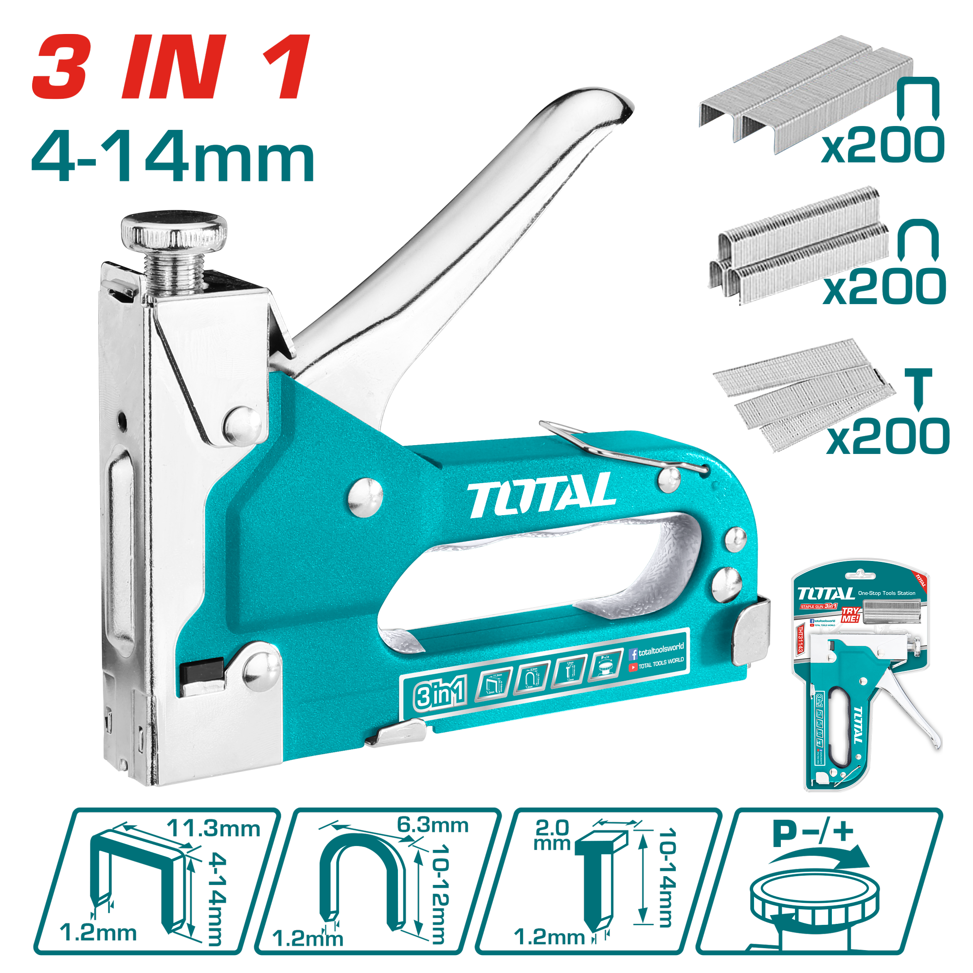 Regular price 32.00 AEDSale price 32.00 AED Regular priceUnit price perSale Sold out3 In 1 staple gun (THT31143) Adjustable driving force Staples: Wire: 1.2mm Crown: 11.3mm Length: 4-14mm U-Shape Staples: Wire: 1.2mm Crown: 6.3mm Length: 10-12mm Brad Nails: Wire: 1.2mm Length: 10-14mm Comes with 200 pieces Staples / 200...