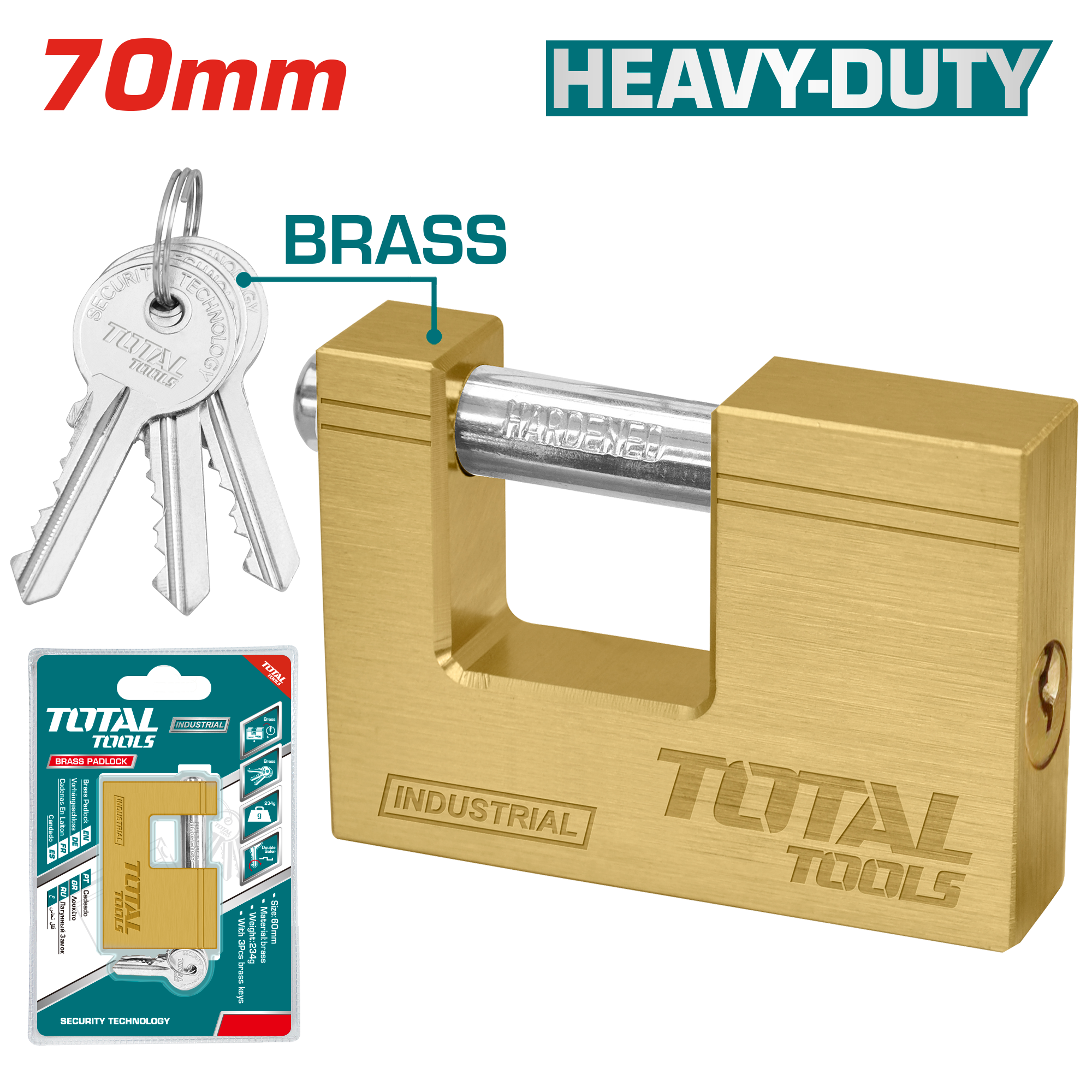 Brass Block Padlock (70mm,402g+3Pc Brass Keys)