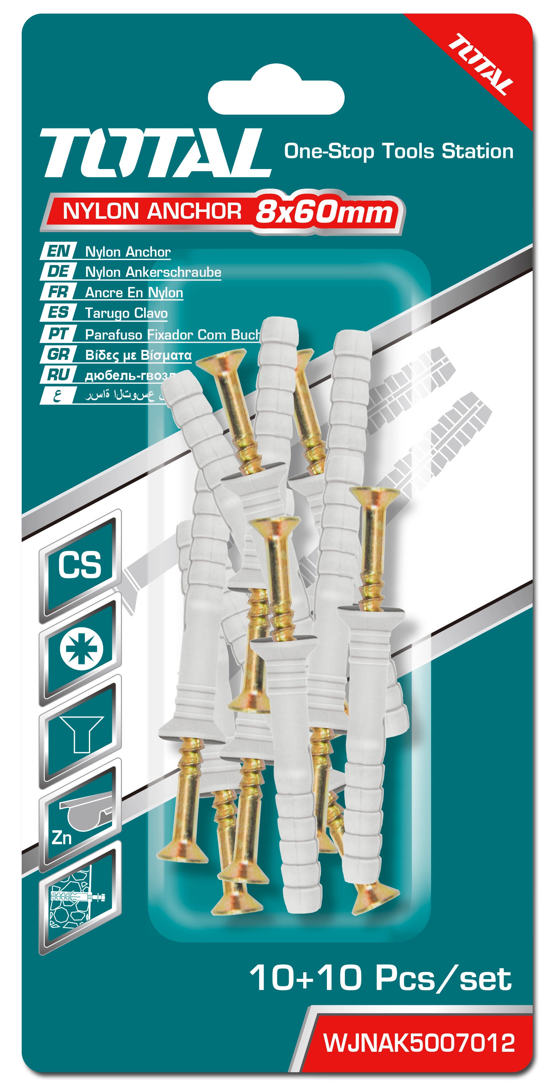 Nylon Anchor - Plug: 8 x 60mm / Screw: 5 x 70mm (10pcs)