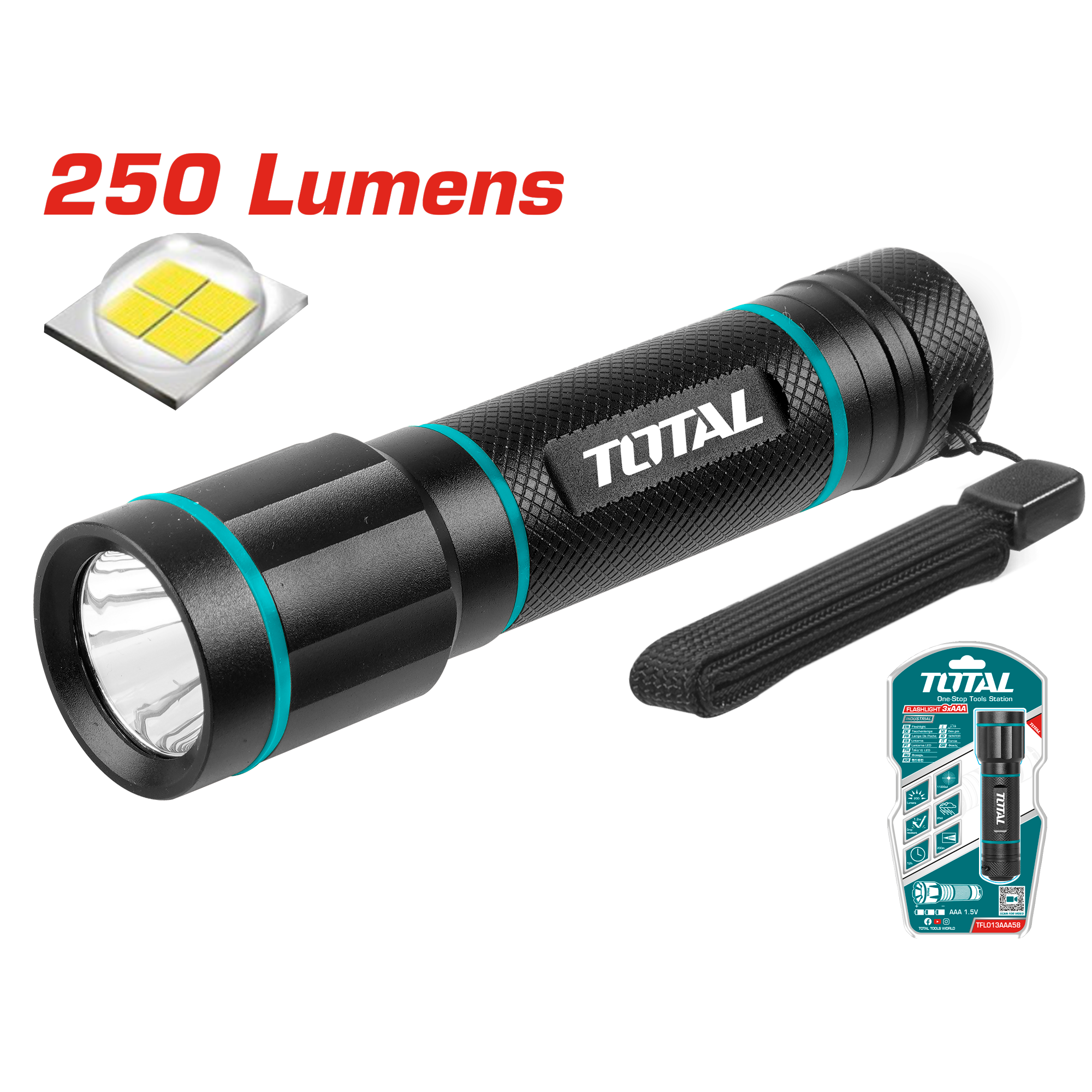 Regular price 79.80 AEDSale price 79.80 AED Regular priceUnit price perSale Sold outTOTAL Flashlight (TCFL1865051) Brightness: High: 450lm Mid: 150lm Low: 50lm High light 4h runtime Low light 18h runtime Five switch modes: High Light, Mid Light, Low Light, Flash,...