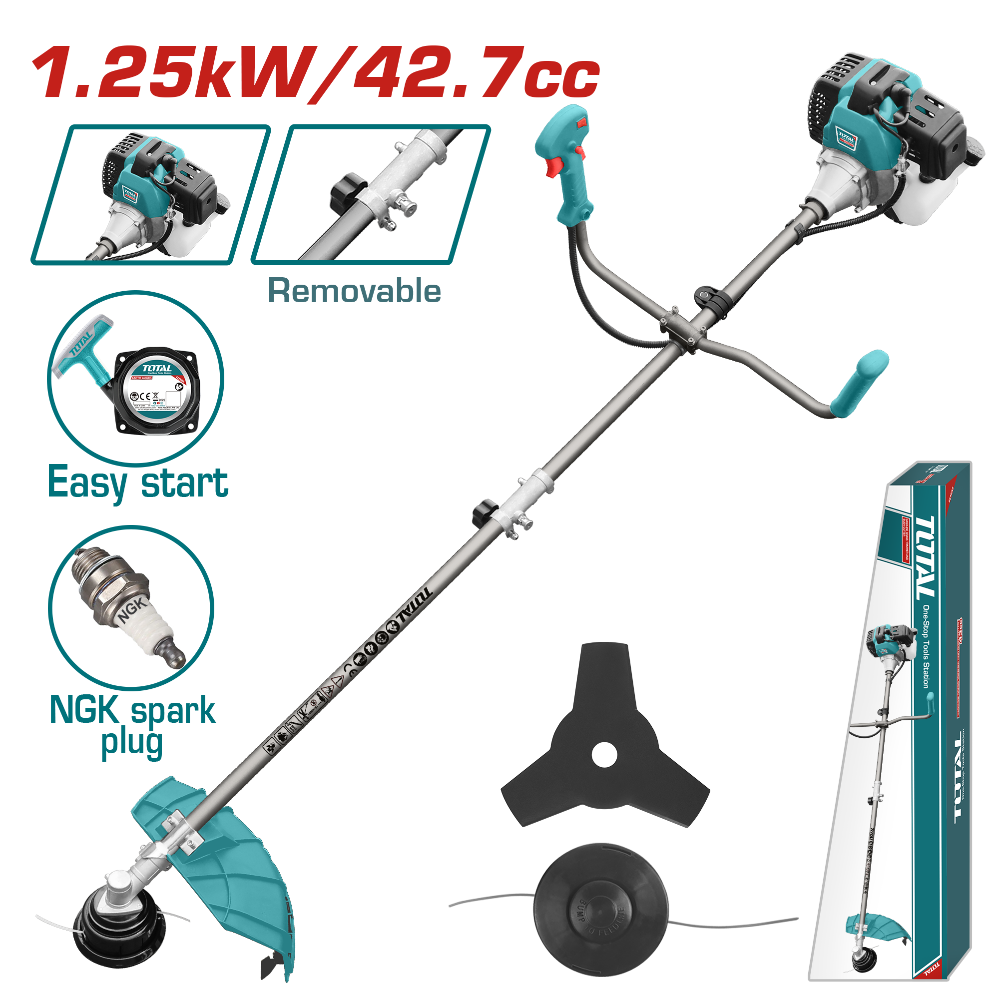 Regular price 349.00 AEDSale price 349.00 AED Regular priceUnit price perSale Sold outTOTAL Gasoline grass trimmer and brush cutter (TP5434421) Displacement: 42.7ccRated power: 1.25kW (1.68HP)Max speed: 8000rpmMax cutting path: 420mmFuel inlet pipe: double-deck polyurethane (PUR) pipeEasy startNGK spark...