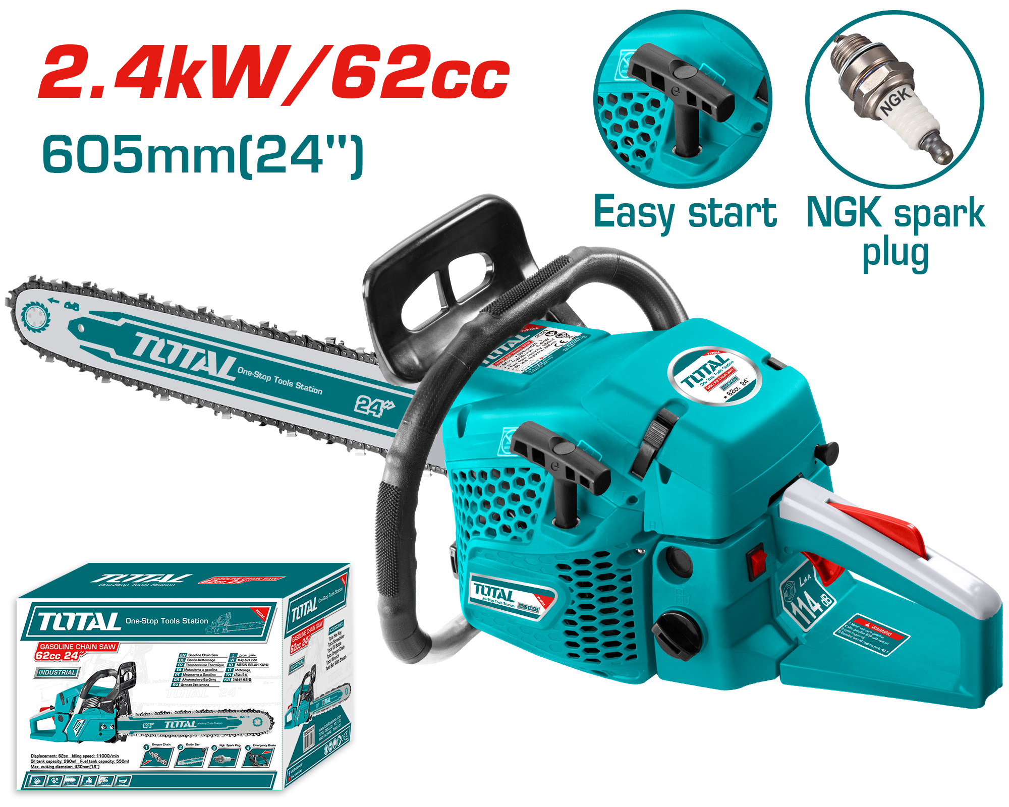 Regular price 499.00 AEDSale price 499.00 AED Regular priceUnit price perSale Sold outTOTAL Gasoline chain saw (TG5602411) Displacement: 62ccRated power: 2.4kW (3.2HP)Engine idle speed: 3100rpm (±300)Max. cutting diameter: 605mm (24")Fuel tank capacity: 550mlOil tank capacity: 260mlPowerful 2-stroke engineIncluded:...