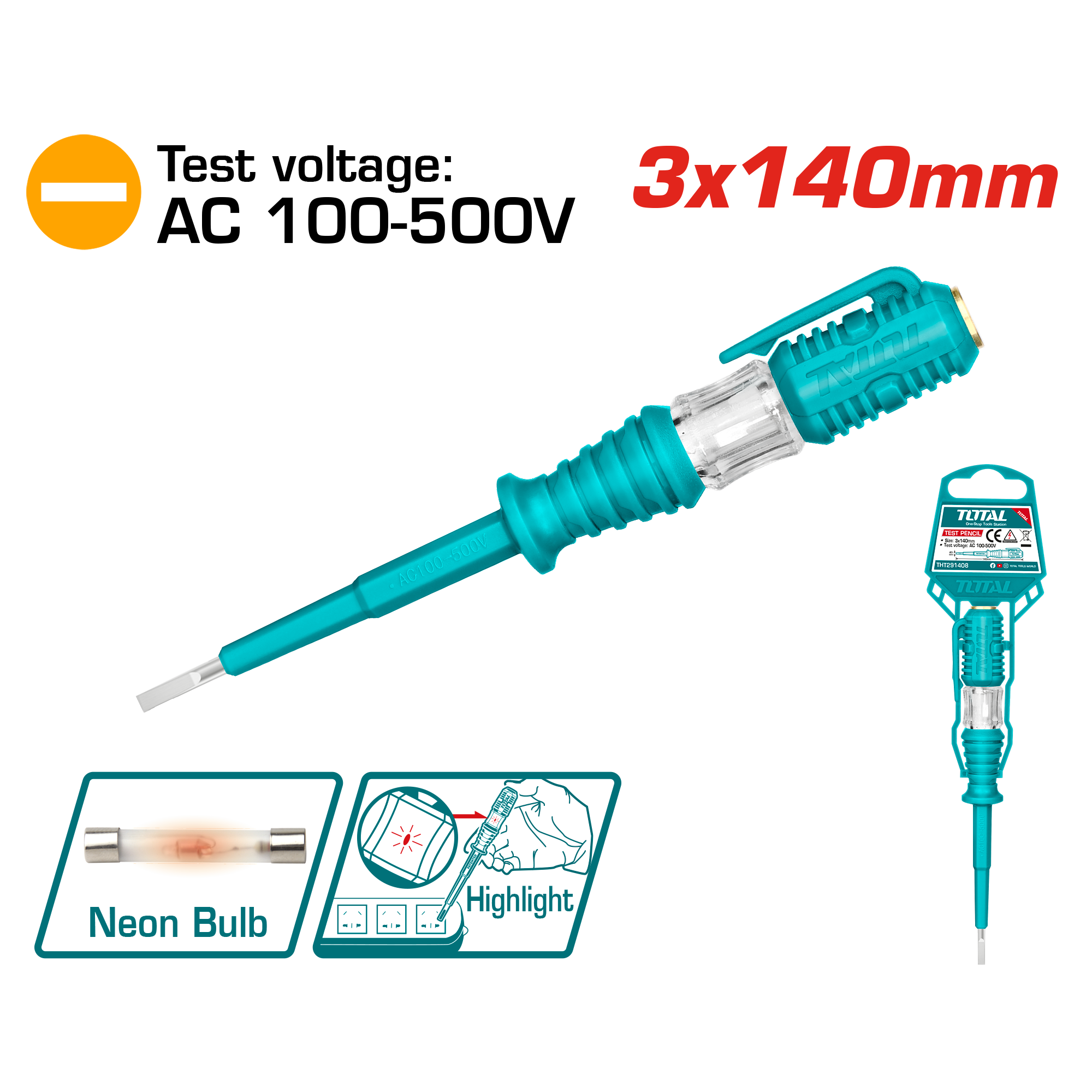 Regular price 12.00 AEDSale price 12.00 AED Regular priceUnit price perSale Sold outTOTAL Test pencil (THT291408) Test voltage: AC 100-500V Slotted size: 3 x 140mm