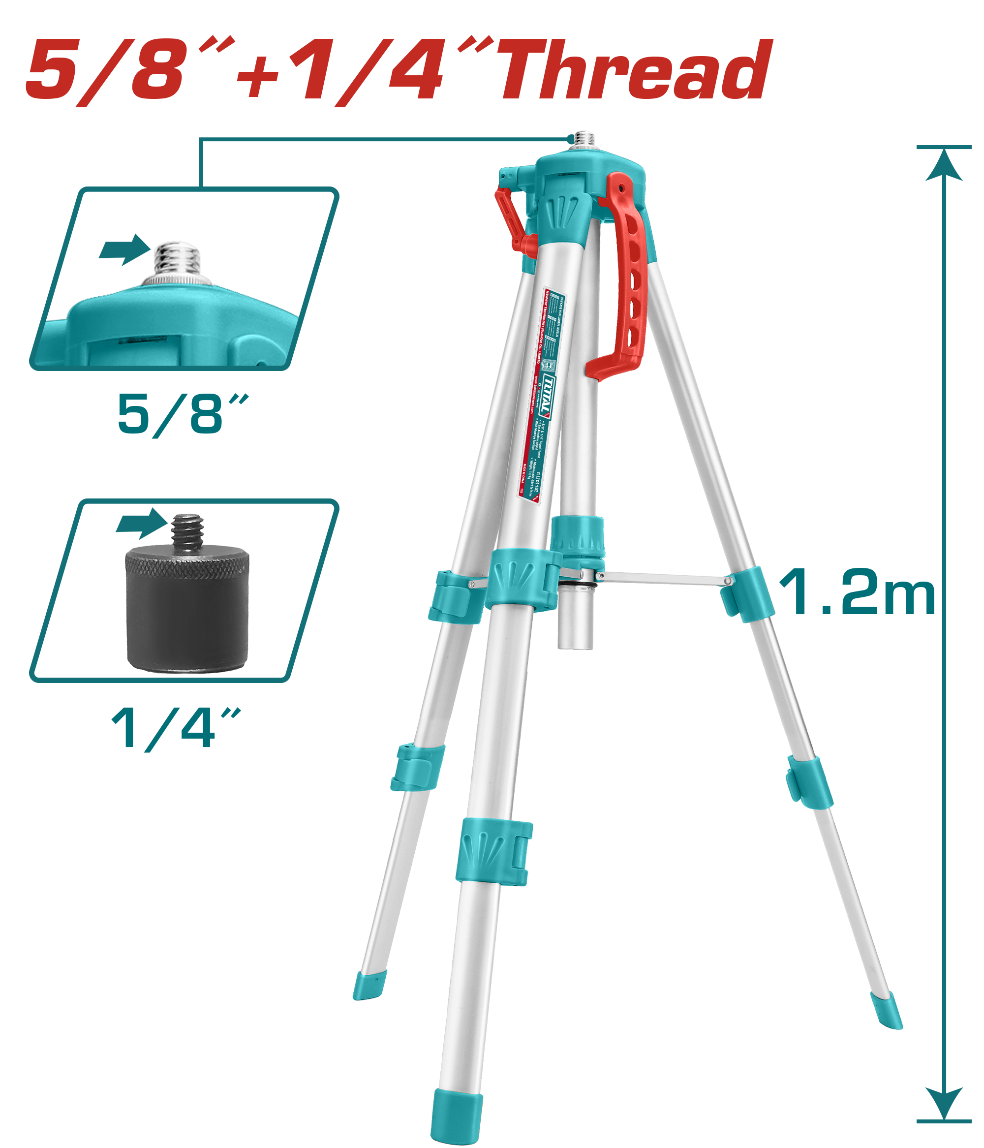 Regular price 89.00 AEDSale price 89.00 AED Regular priceUnit price perSale Sold outTOTAL Tripods for laser levels (TLLT01152) 5/8" & 1/4" Thread1.2m Aluminum tripodCompatible with TLL156503, TLL156601, TLL306505, TLL305205, TLL301200, TLL301201, & UTLL301201Weight: 1.0kg