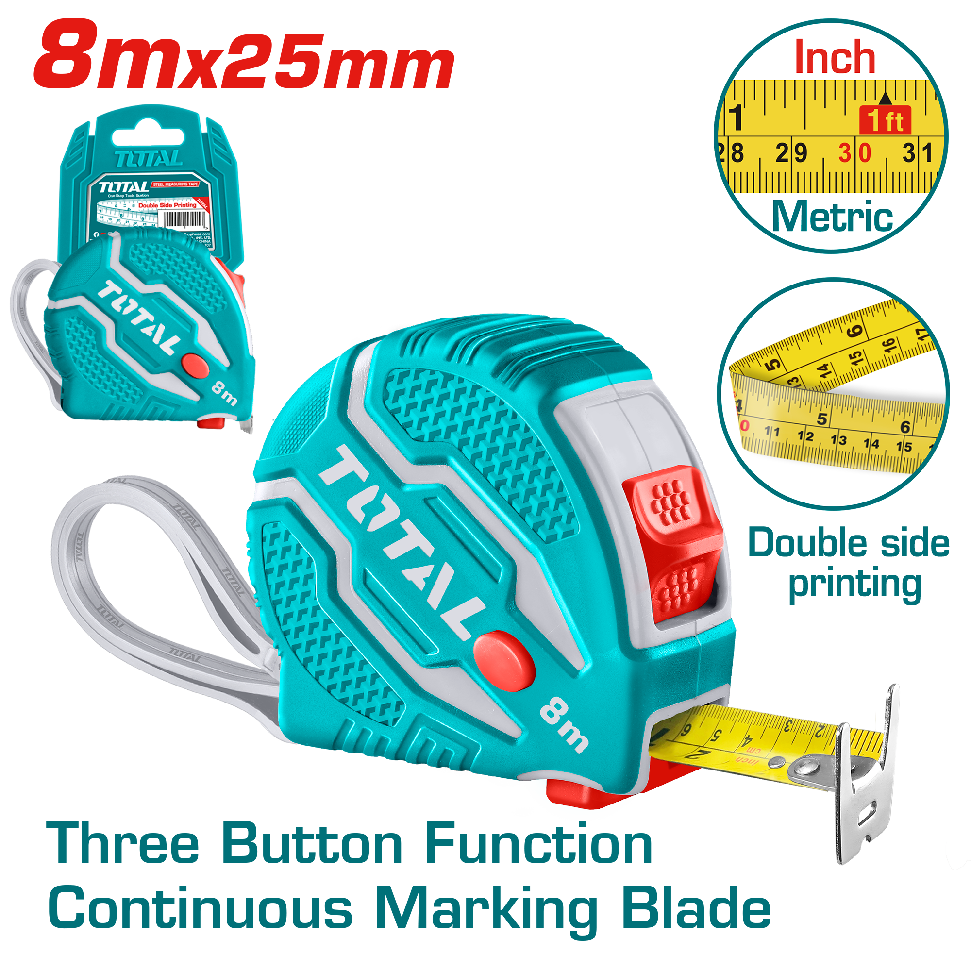 Regular price 0.00 AEDSale price 0.00 AED Regular priceUnit price perSale Sold outLength & width: 8m x 25mmWith metric and inchWith 3 stop button functionWith rubber cover