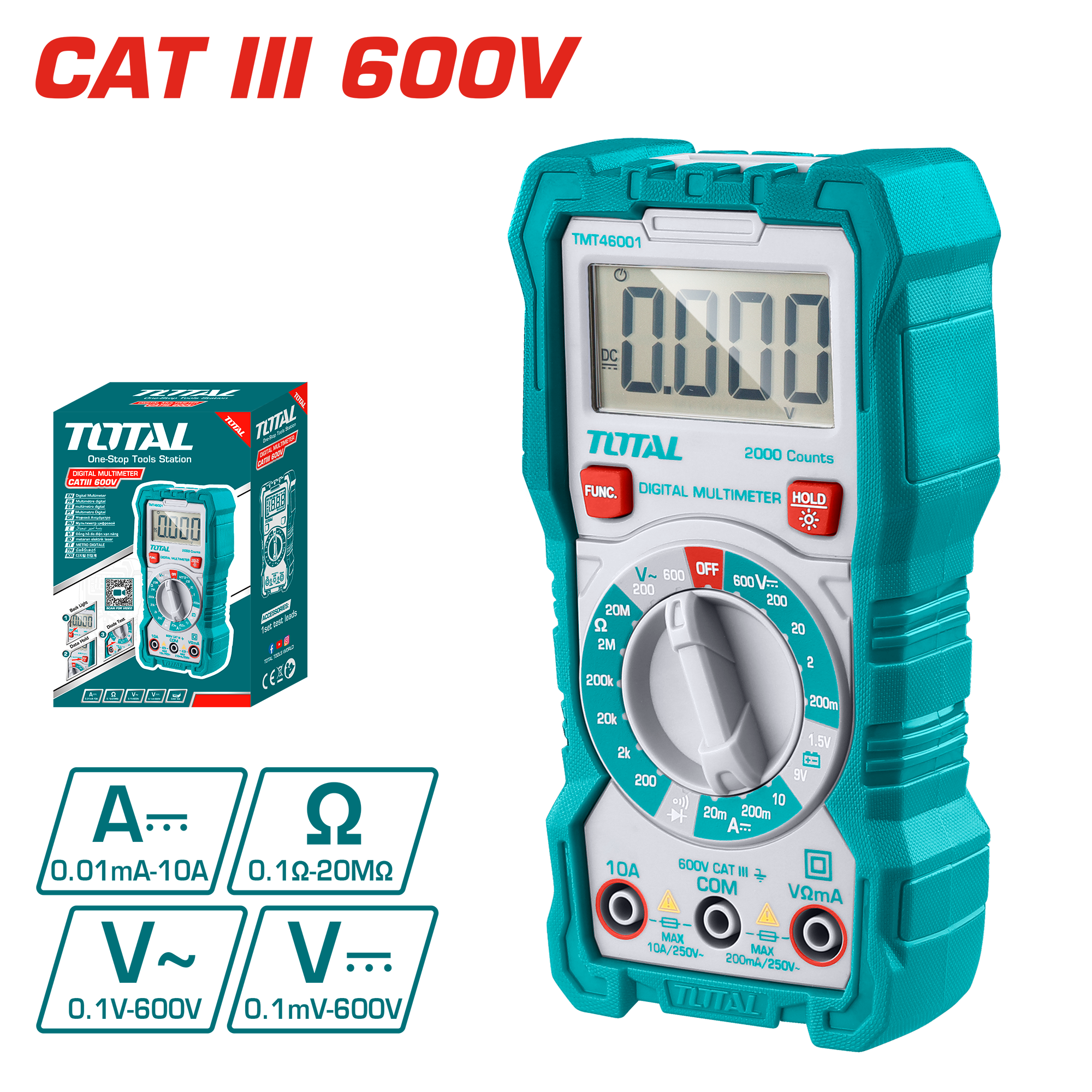 Regular price 89.00 AEDSale price 89.00 AED Regular priceUnit price perSale Sold outTOTAL Digital multimeter (TMT5310002) Display: TRUE RMS 6000 countsDC/AC Current: 6000uA / 60mA / 600mA / 10ADC Voltage: 600mV / 6V / 60V / 600V /...