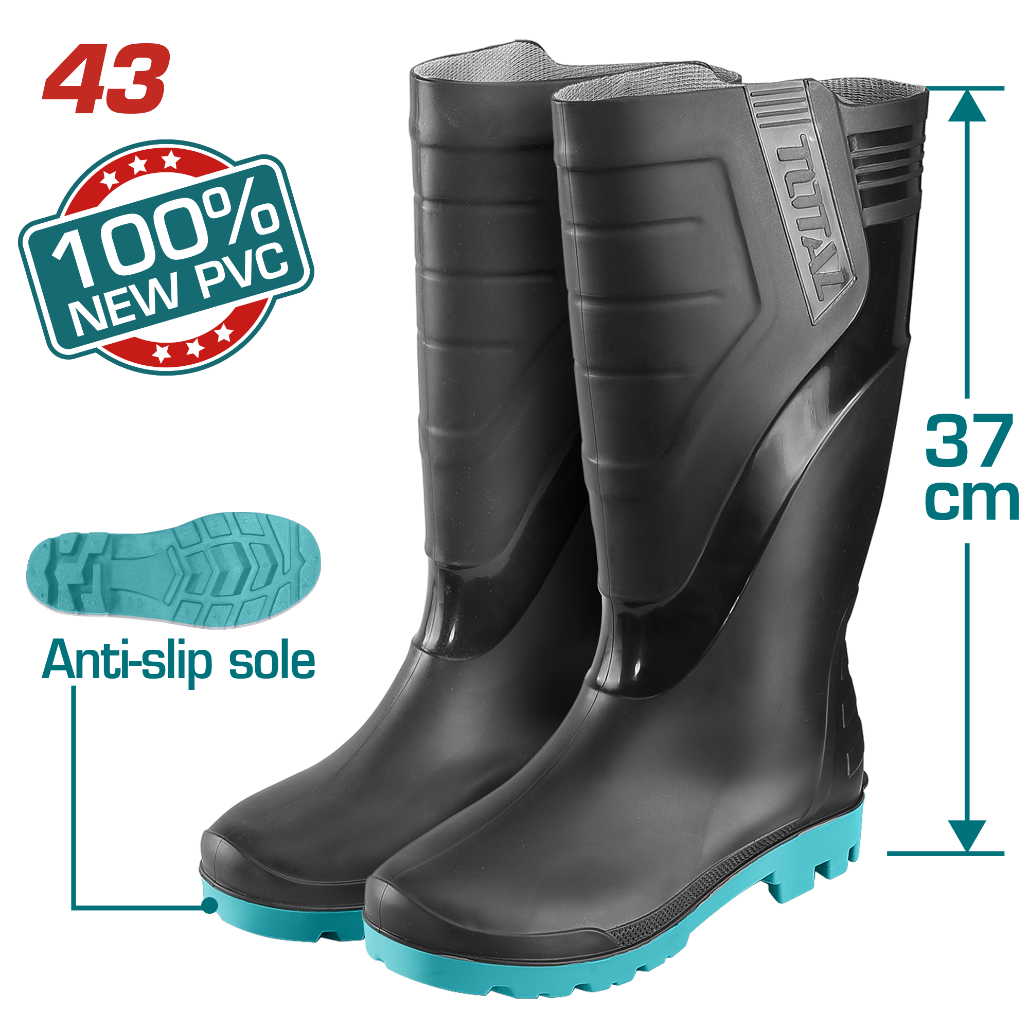 Regular price 59.00 AEDSale price 59.00 AED Regular priceUnit price perSale Sold outTOTAL Rain boots (TSP302LAB) Material: 100% Virgin PVCHeight: 37cmHigh level oil, acid, alkali resistance100% Waterproof