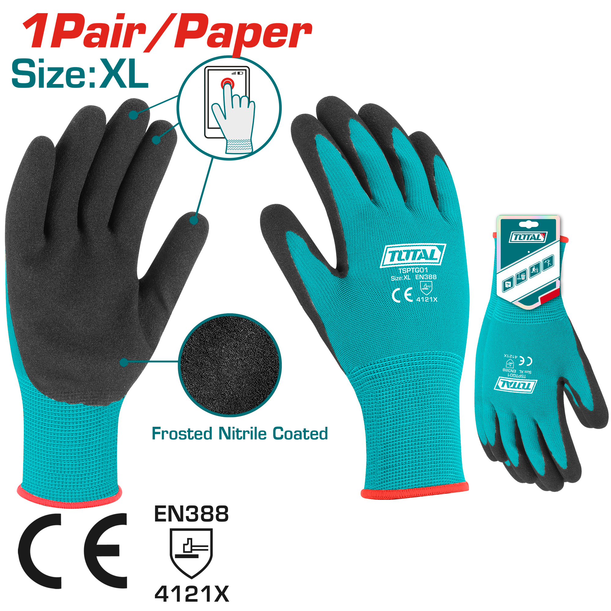 Regular price 18.00 AEDSale price 18.00 AED Regular priceUnit price perSale Sold outTOTAL Nitrile frosted coated gloves (TSPTG01) Size:XLLiner Material: Polyester Thread Coating material / Finish: Nitrile Frosted Coated Gauge: 15 Protection level: 4121X Use for oil environment (Less oil) worker etc Nitrile...